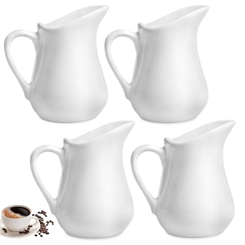 4 Stück Milchkännchen Porzellan Weiß, 80ml Kleine Milchkanne mit Griff, Aufschäumkännchen, Milk Jug, Mini-Kännchen, Sahnekännchen für Milch, Kaffee, Saucen, Küche, Bar, Café