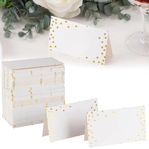HSYTEK 50 Stück Tischkarten Hochzeit, Blanko Tischkarten Geburtstag, Goldfolien Punkten Platzkarten, 9x11.4 cm Tischkärtchen für Hochzeit, Kommunion, Geburtstag, Produktetiketten (Gold)