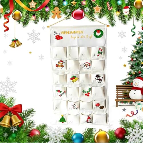 2025 Wiederverwendbarer Adventskalender Zum Befüllen – Dekorativer Stoff-Wandkalender Mit 24 Fächern | Weihnachtscountdown-Geschenk & Festliche Deko