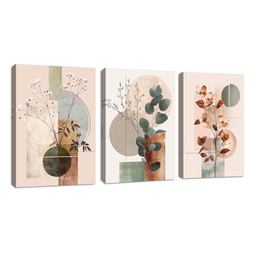 3Pcs Beige Geometrisch Abstrakt leinwand Bilder mit Rahmen Botanisch Baumwolle Eukalyptus Blatt Wandbilder Pflanzen Blumen Bild Auf Leinwand Kunstdruck Deko für Wohnzimmer schlafzimmer Büro 30X40cmX3