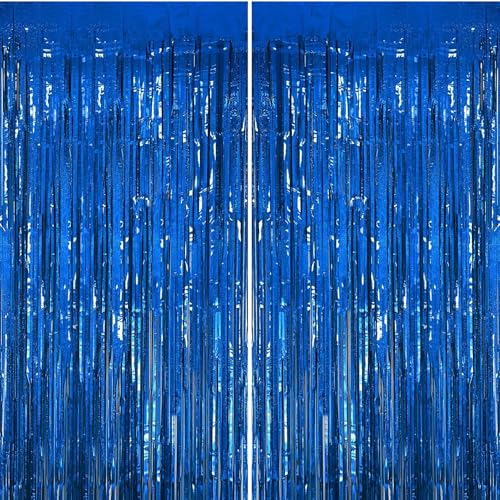 carve ideas 2 Stück Lametta-Folienvorhang, Metallischer Fransen-Hintergrund Party-Deko für Geburtstag, Hochzeit, Verlobung, Baby-Shower, Junggesellinnenabschied, Weihnachten, Fest (1 × 2,5 m, Blau)