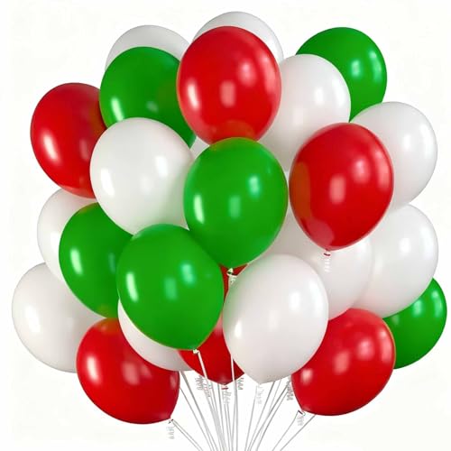 Fesnova Italienische Deko,Luftballons Weihnachten in Rot, Weiß und Grün,12 Zoll,für Party-Sportwettbewerb Fußballspiele Parade (Italien),Party-Deko, 30 Stück
