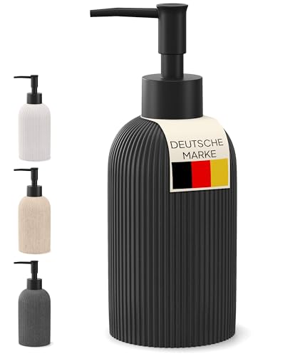 FUZZEL Seifenspender Schwarz | Seifenspender Bad und Küche | Nachfüllbarer Pumpspender für Flüssigseife | Spülmittelspender matt | Soap Dispenser | Polyresin | Modern Design | 250ml