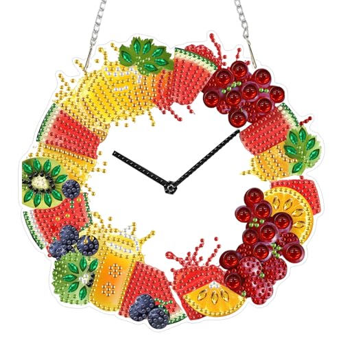 AIRDEA Fruchtuhr Diamond Painting Fensterbilder, 5D Brillante Orangensaft Diamond Painting Fensterbilder Beidseitig, Bausätze für Diamantmalerei Suncatcher Erwachsene 8x8 inch