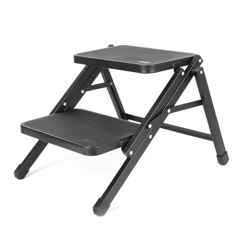 Wiltec Camping Doppeltrittstufe bis 200 kg, 2 Stufen Tritt aus Stahl, Trittleiter für Camping, Outdoor und Haushalt