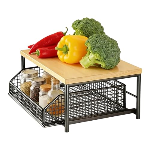Generisch Vertical Storage Shelves - 2 Tier Organizer Rack | Iron and Wood Space Saving Holder for Pantry Kitchen Garage Laundry Bathroom Office Home, Small Apartment Storage