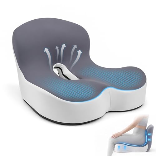 Snovire Orthopädisches Sitzkissen mit Rückenlehne, Ergonomisches Rückenstützkissen aus Memory-Schaumstoff, Steißbeinkissen, Stuhlkissen für Bürostuhl, Autositz, Rollstuhl, Büro, Auto, Grau