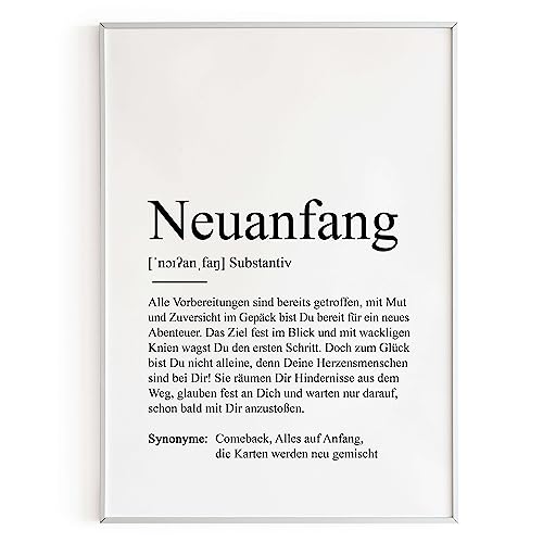 KAMEWI® Poster NEUANFANG Definition | Herzensmensch Motivationsposter Aufmunterung nach Krankheit Lieblingsmensch