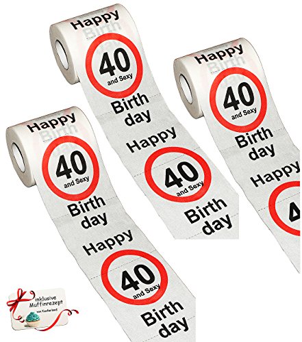 alles-meine.de GmbH 3 Stück Rollen Toilettenpapier - 40. Geburtstag/vierzig und Sexy - Happy Birthday - WC Klopapier Klopapier - 28 m - Verkehrsschild - Geschenkartikel -..
