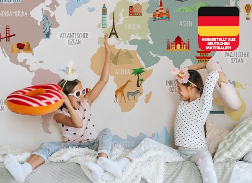 Osomhome Wandtattoo Weltkarte Monumente Pastellfarben (160x100cm) | World Map Wall Decoration Wandsticker | Deco Kinderzimmer Junge & Mädchen | Wandaufkleber Wandbild Kinderbilder Wandtattoo os5045