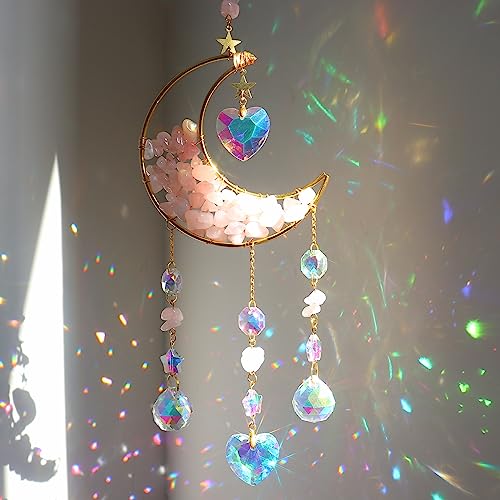 YeahBoom Sonnenfänger Kristall Fenster,Mond Kristall Anhänger Deko,Fensterdeko Hängend,Kristall-Sonnenfänger,Regenbogen Sonnenfänger Kristal,Regenbogen Kristalle Anhänger,Zuhause Gartendeko