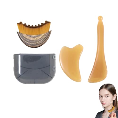 Lymphdrainage-Massagegerät-Set, Lymphkontur-Gesichtsbürste, Lymphdrainage-Bürste, Gesichtsformung für Kiefer-Definition, tragbar zu Hause und auf Reisen, ideales Geschenk für Frauen, 3-teilig