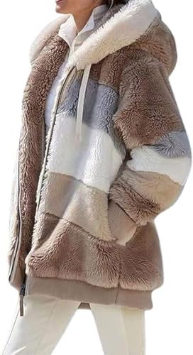 Damen Teddy Fleecejacke Mantel Kapuzenjacke Hoodie Jacke Winterjacke Mode Kapuze Casual Jacken Reißverschluss Plüschjacke Oberteile Elegant Kapuzenpullover Hoodie Sweatshirtjacke mit Tasche