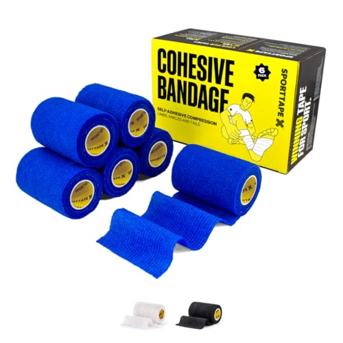 SPORTTAPE 6 Rollen verband selbstklebend - 7,5 cm x 4,5 m - Blau - Kohäsive bandage für erste hilfe, kompression, sportverletzungen und tierarztwickel für Hunde und Pferde