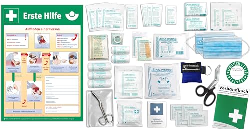 Komplett-Set Erste-Hilfe nach aktueller DIN/EN 13157 PLUS 1 - Paket 2 -für Betriebe INKL. Notfallbeatmungshilfe & AUSHANG "Erste-Hilfe"