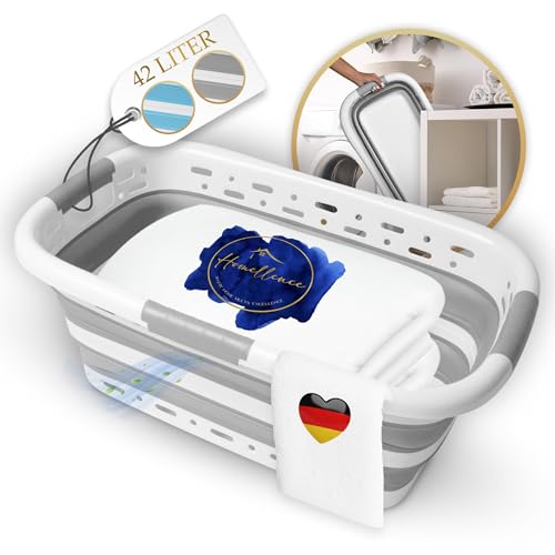 Homellence Wäschekorb Faltbar Klappbar 42 Liter - Klappbarer Faltbarer Wäschekorb BPA-frei - Faltbare Wäschekörbe - Wäschewanne Faltbar - Faltwanne - Foldable Laundry Baskets - 65x40x27/8,5cm (Grau)