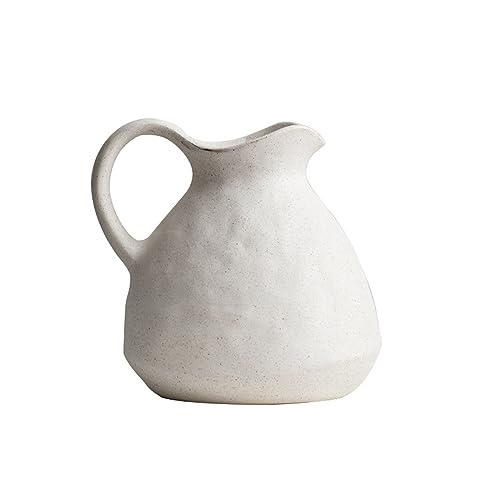 JTBDWOSK Keramik Weiße Vase Mit Griff - Rustikaler Krug für Wohnkultur, Vintage-Deko für Bauernhaus-Dekor, Tischdekoration (Nur Vase), 1