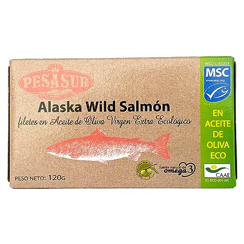 Soldimar Pesasur Alaska Wildlachs Filets in nativem Bio-Olivenöl - spanisch und extra vergin, 5er Pack (5 x 120g)