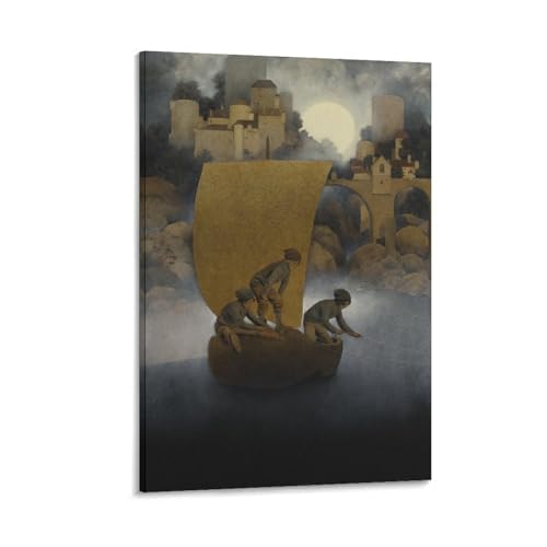Maxfield Parrish-Wynken, Blynken und Nod (1902) - Ölgemälde, Kunstwerke, Leinwand-Poster, Wandkunstdrucke, moderne Dekoration, 20,3 x 30,5 cm (2)